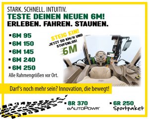 Unter dem Motto ERLEBEN. FAHREN. STAUNEN. laden wir Euch herzlich zu unserer John Deere 6M Roadshow 2025 ein! Taucht ein in die Welt der John Deere Traktoren und erlebt unsere Maschinen live und zum Anfassen. Ihr habt die Möglichkeit, die neuen 6M-Modelle (mit einer Nennleistung von 95 bis 250 PS) selbst zu testen und hautnah zu spüren, was Kraft und Komfort wirklich bedeuten. Als besonderes Highlight präsentieren wir Euch unser Flaggschiff aus Mannheim – den 6R 250 mit dem neuen Sportpaket – ebenfalls bereit für eine Testfahrt vor Ort. Außerdem wartet der beeindruckende 8R 370 mit eAutoPowr, dem weltweit ersten stufenlosen Getriebe mit elektrischer Leistungsverzweigung, auf Euch. Das ist modernste Technik, die neue Maßstäbe in Sachen Leistung und Effizienz setzt!