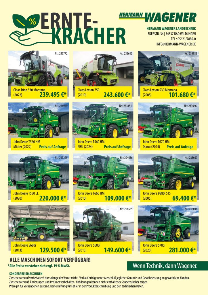 Wir haben für jede Ernte das passende Modell. Jetzt ist die perfekte Zeit, um mit neuer Power durchzustarten – Leistungsstark und sofort verfügbar! Ob neue Mähdrescher mit modernster Technik, Demomaschinen aus der vergangenen Saison oder gebrauchte Claas Mähdrescher in Top-Zustand – bei unseren ERNTEKRACHERN ist für jeden Betrieb das Richtige dabei.