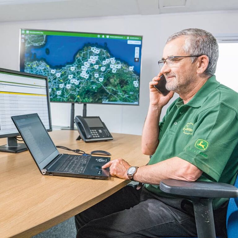 Das „Maschinen-Dashboard“ ist ein von John Deere entwickeltes Support-Tool zur Ferndiagnose. Mithilfe der erweiterten Analyse wird uns als Vertriebspartner der Betriebszustand der Maschine in Echtzeit präsentiert, damit wir schnell erkennen, welche Maschinen sofort gewartet werden müssen.