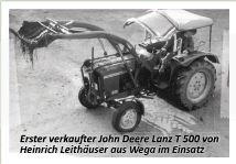 Hermann Wagener übernahm die John Deere Vertretung. Der erste verkaufte Traktor, ein John Deere T 500 wurde an den Landwirt Heinrich Leithäuser in Wega verkauft. Heute ist dieser Traktor mit über 10.000 Betriebsstunden ein Ausstellungsstück im Betrieb.